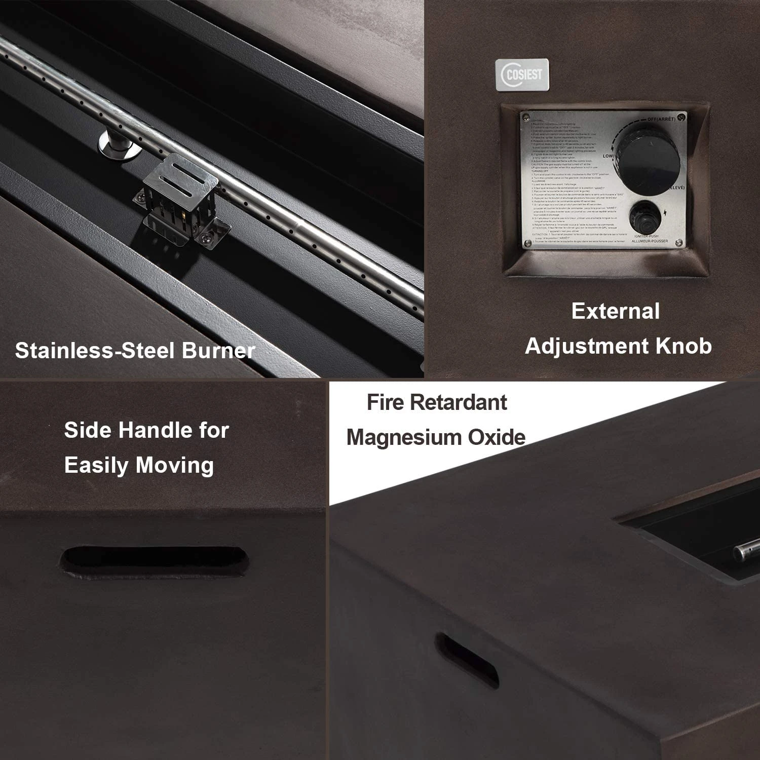COSIEST 8 Piece Outdoor Wicker Sectional Sofa w Fire Pit Table,Chocolate Brown Patio Furniture Set w 56 x 28 inches Rectangle Bronze Fire Table (50,000 BTU) and Tank Outside(20lb) for Garden