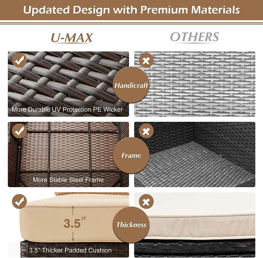 7 Piece Outdoor Patio Furniture Set, PE Rattan Wicker Sofa Set, Outdoor Sectional Furniture Chair Set with Khaki Cushions and Tea Table