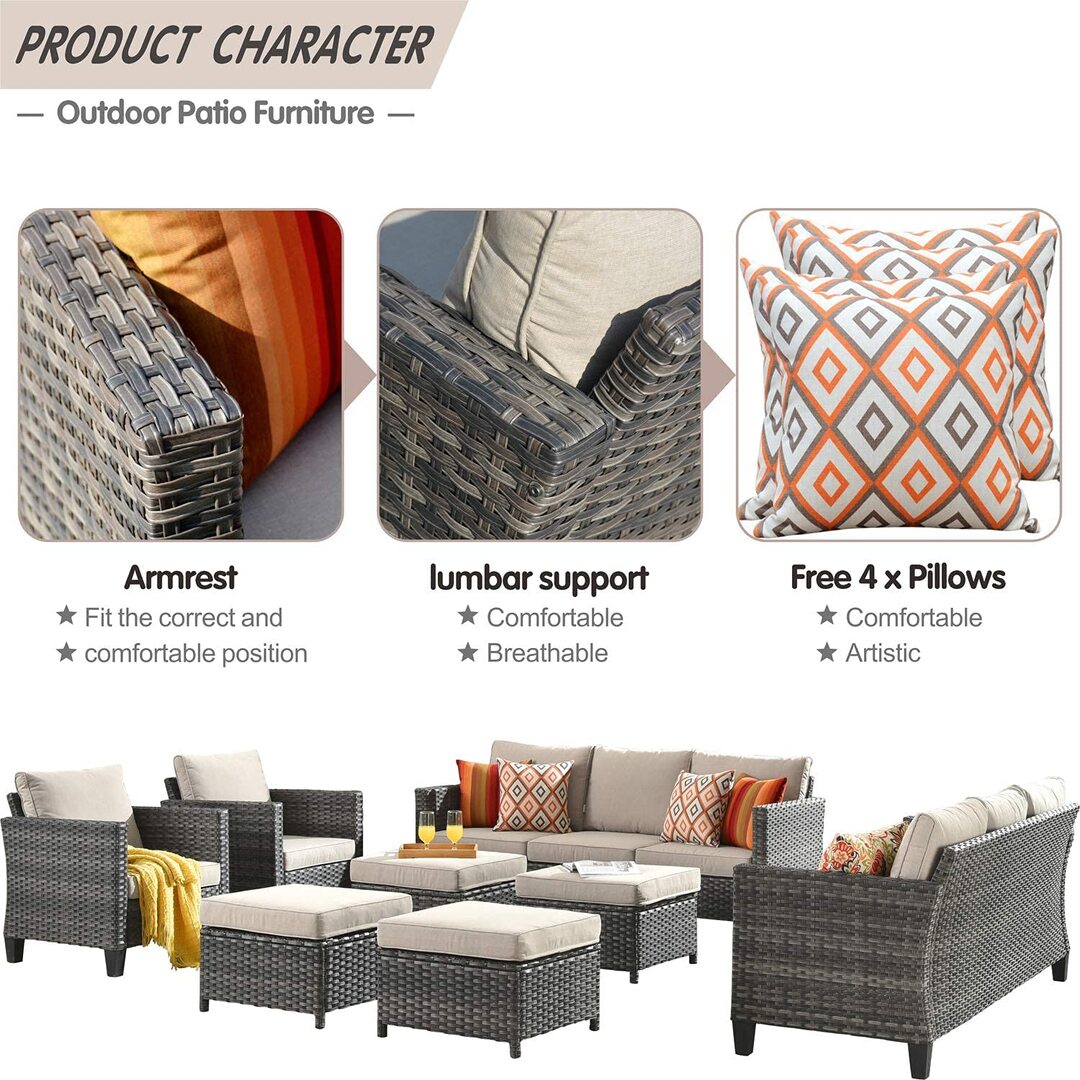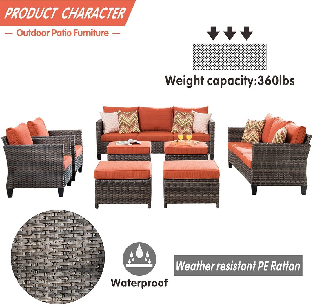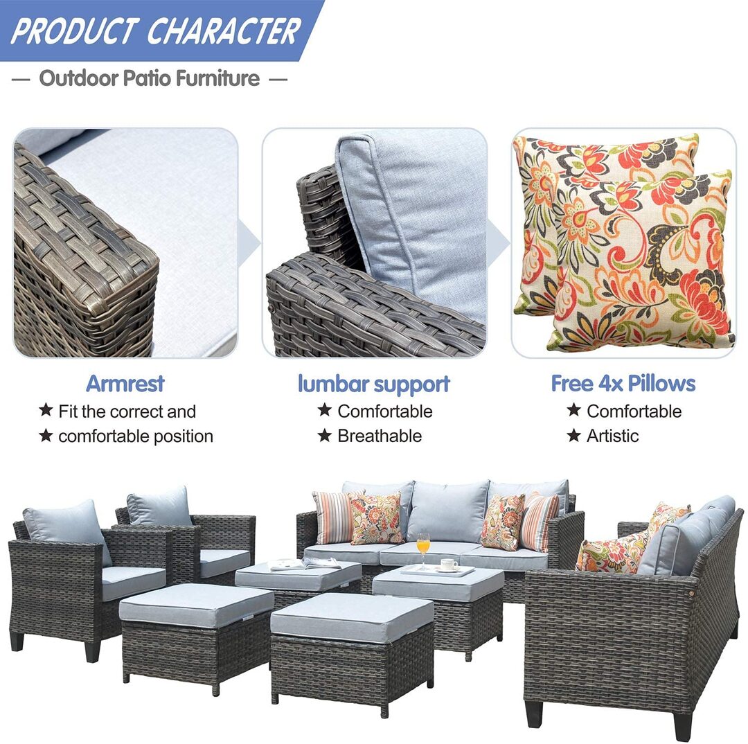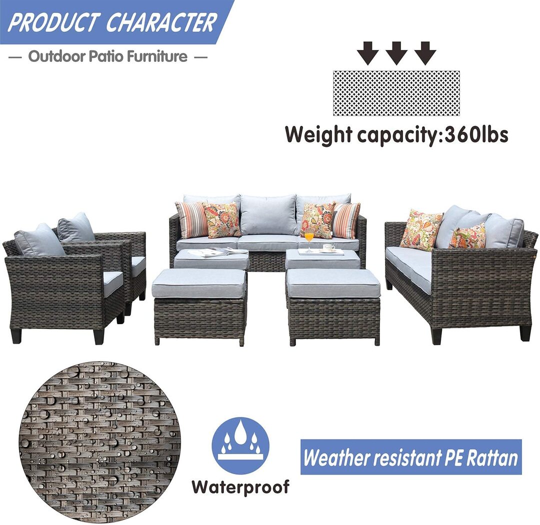 Patio Furniture 8 PCS Hight Back Outdoor Furniture Sets Modern Wicker Patio Furniture Conversation Sets with 4 Pillows All Weather Garden Patio Sofa