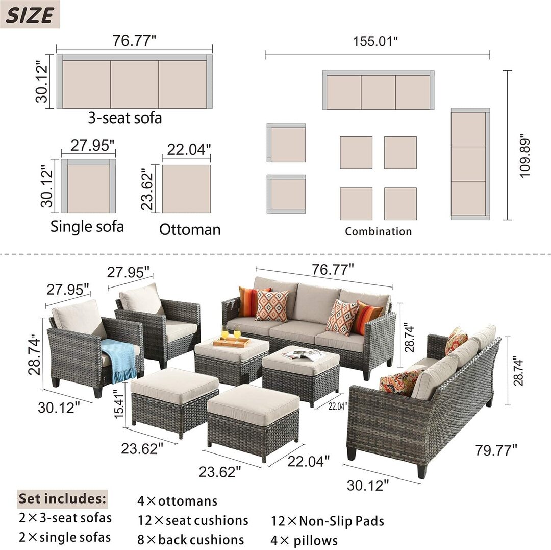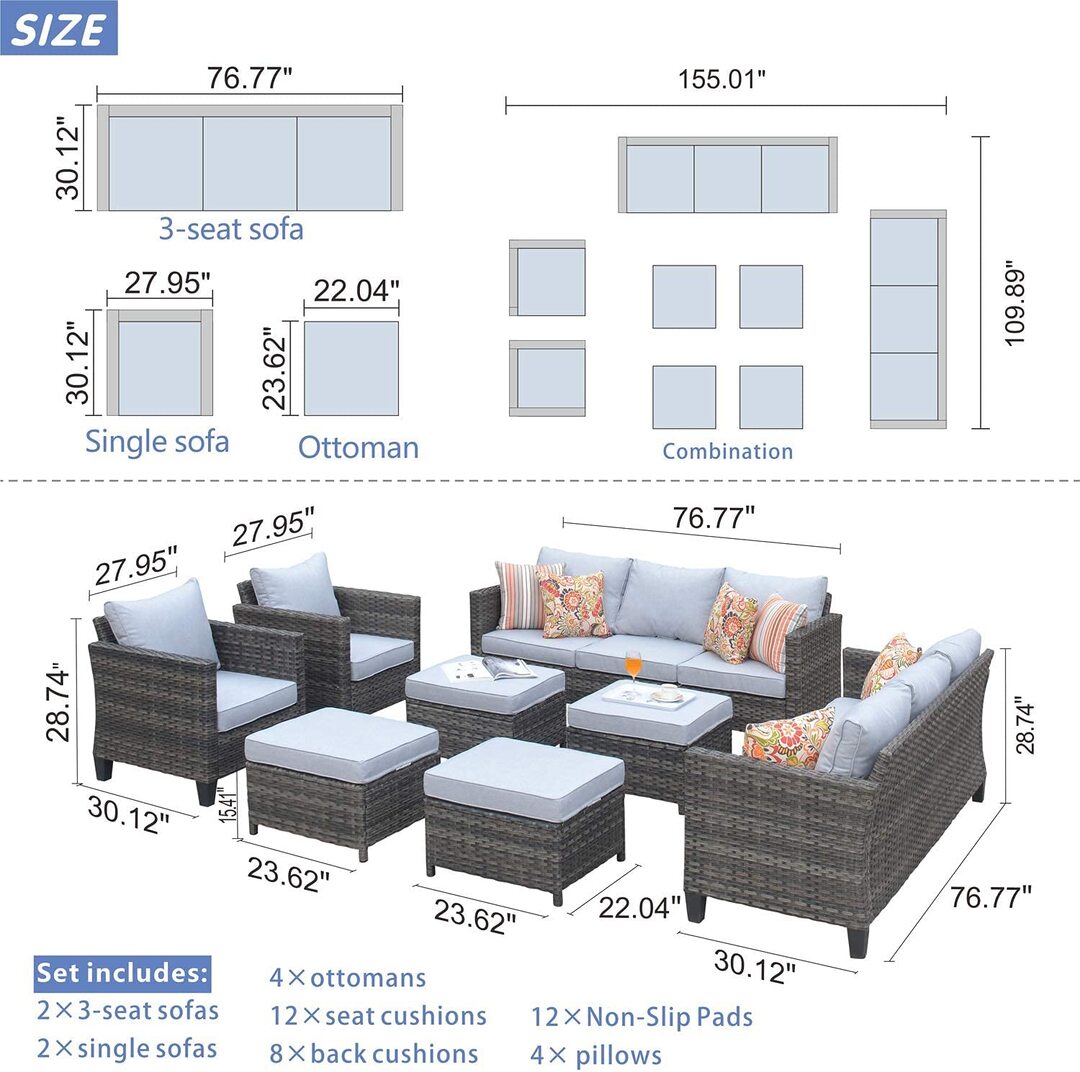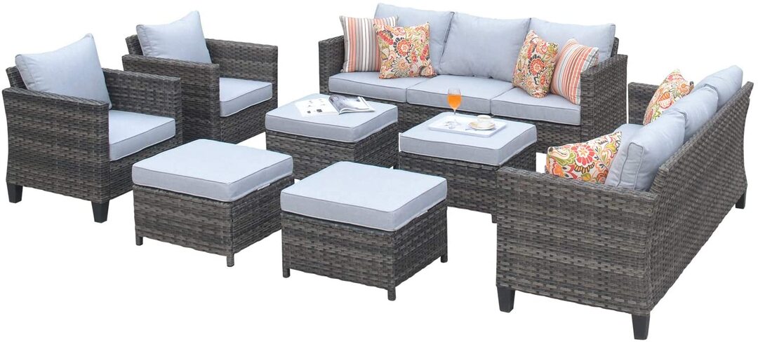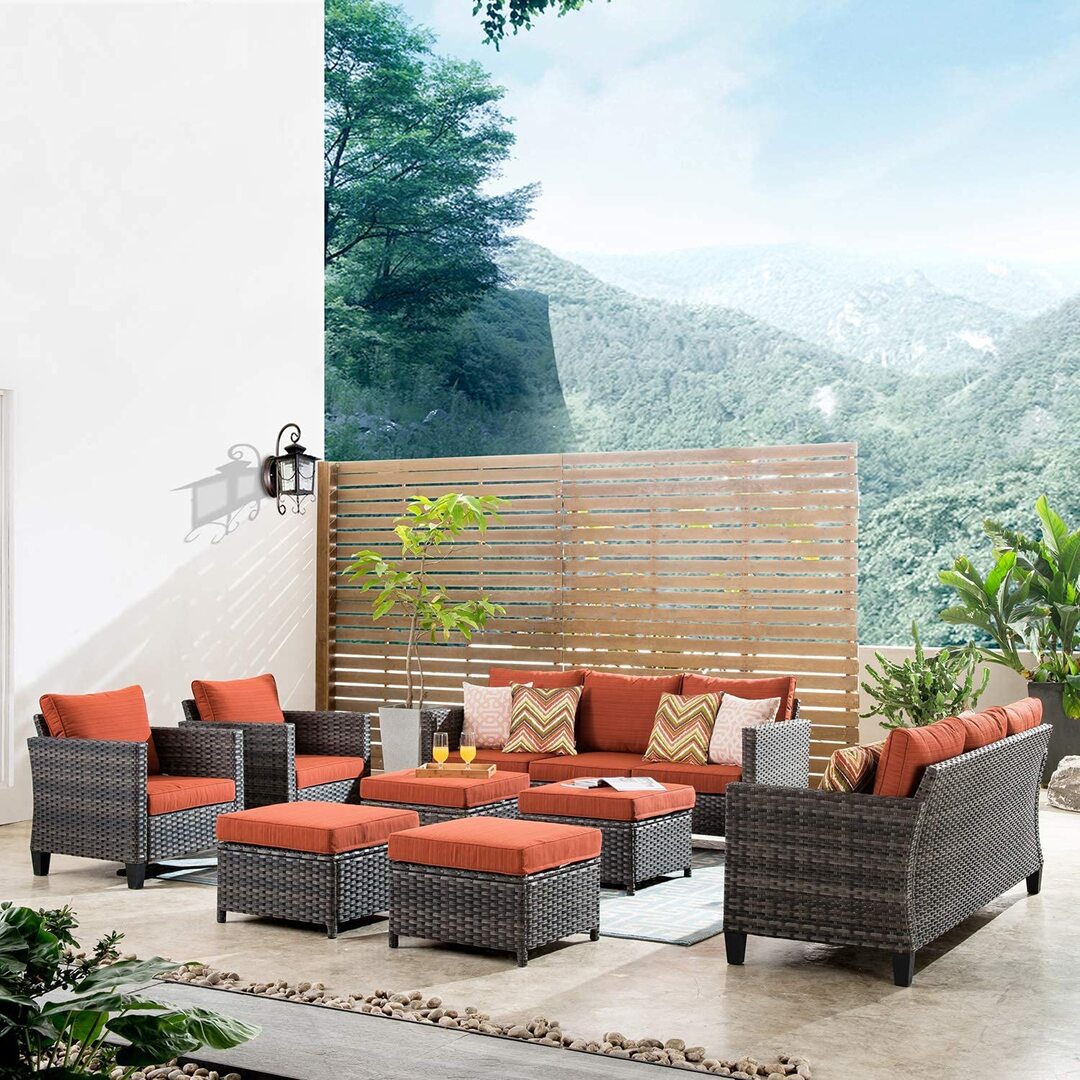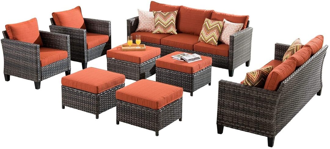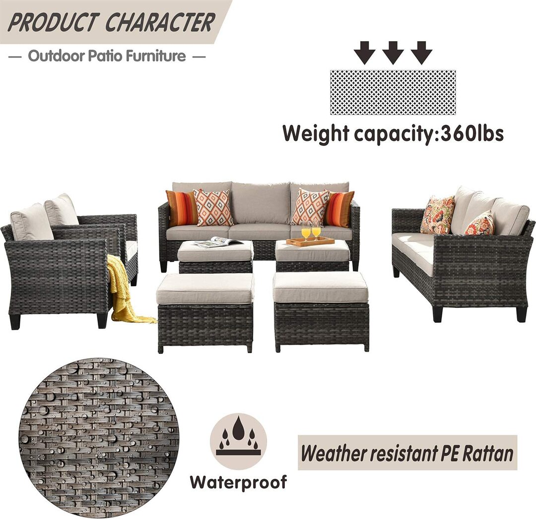 Patio Furniture 8 PCS Hight Back Outdoor Furniture Sets Modern Wicker Patio Furniture Conversation Sets with 4 Pillows All Weather Garden Patio Sofa
