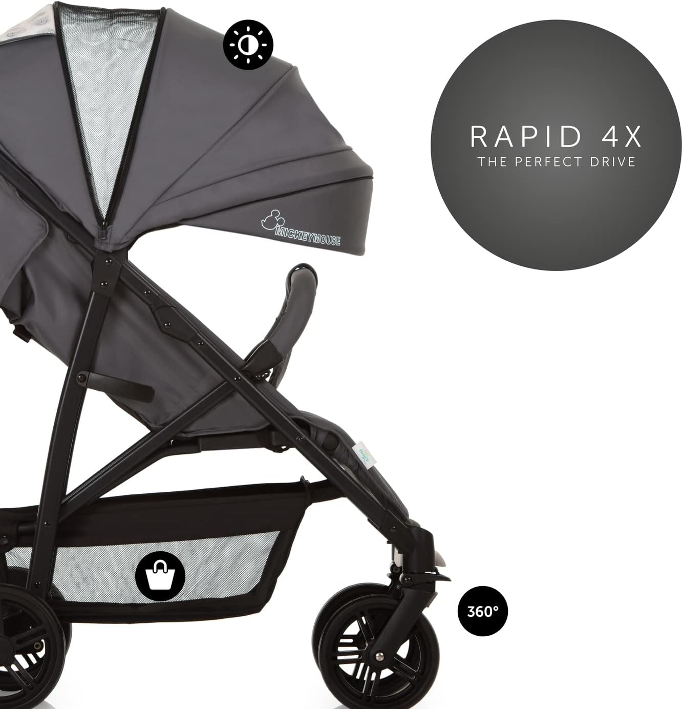 hauck Rapid 4X Carrito Bebe, desde el Nacimiento hasta 25 kg, Silla de Paseo Ligera, Silla Bebe, Reclinable, Plegable, Compacta, Mickey Mouse Gris