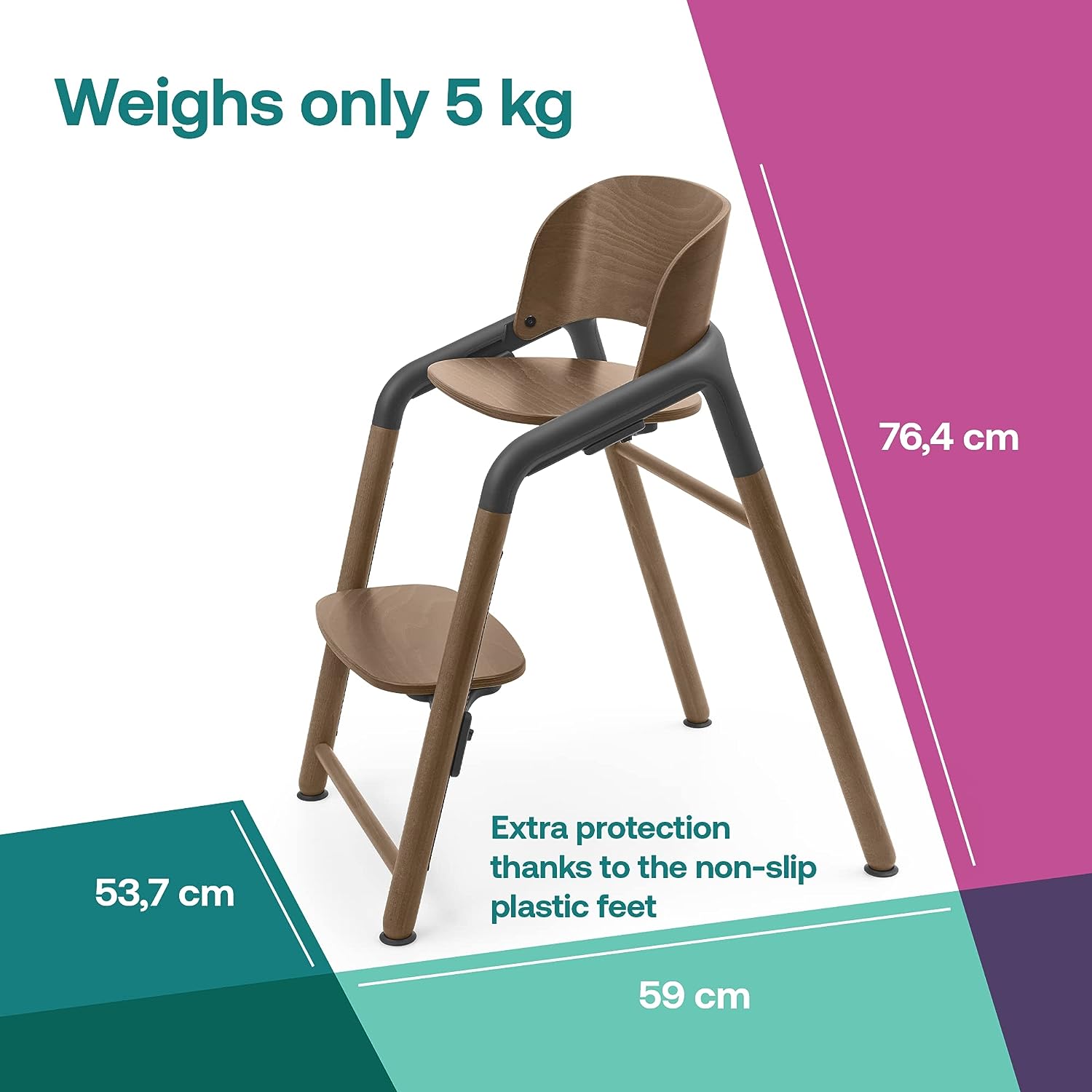 Bugaboo Giraffe Wooden Baby High Chair, Adjustable in 1 Second, Easy to Clean, Safe and Ergonomic Highchair, Suitable from Birth in Combination with Newborn Set (Sold Separately), Warm Wood/Gray