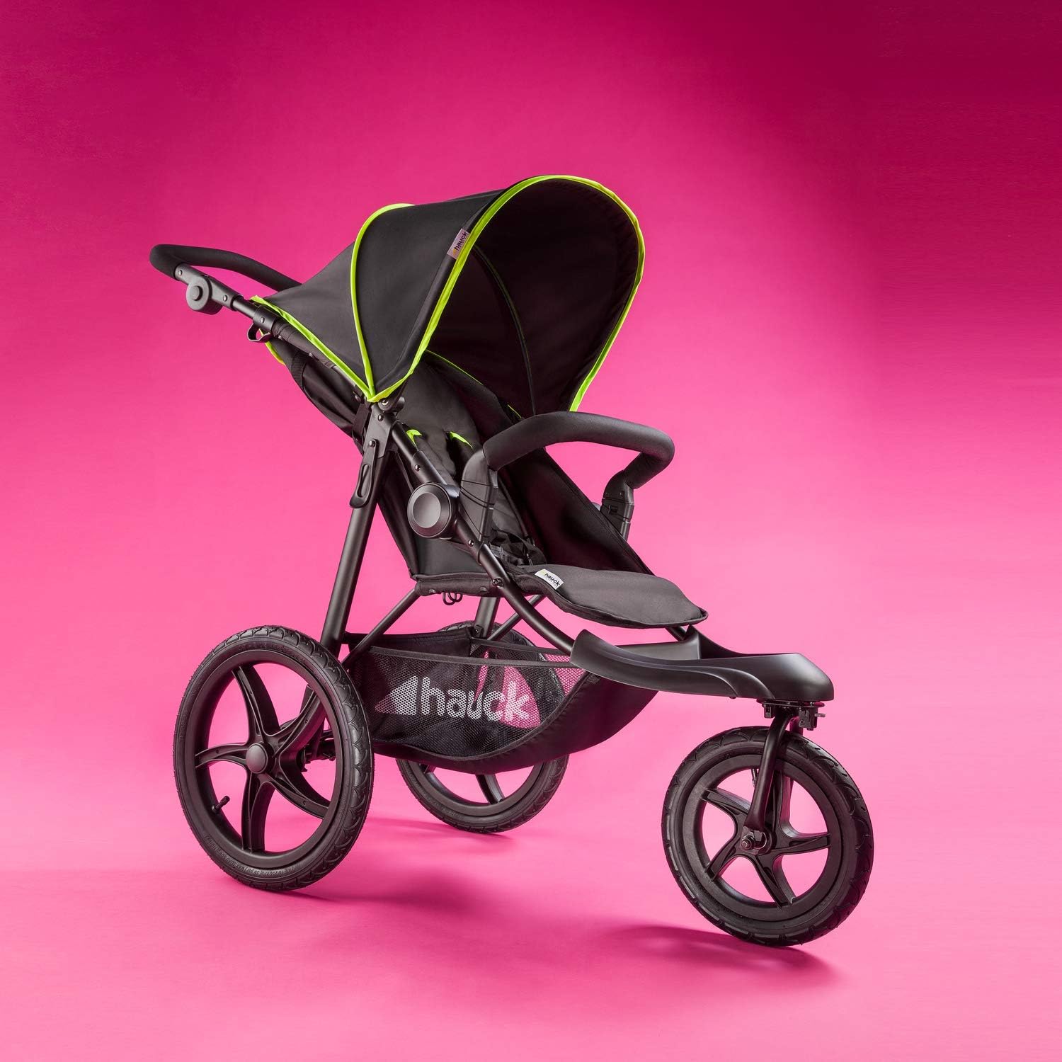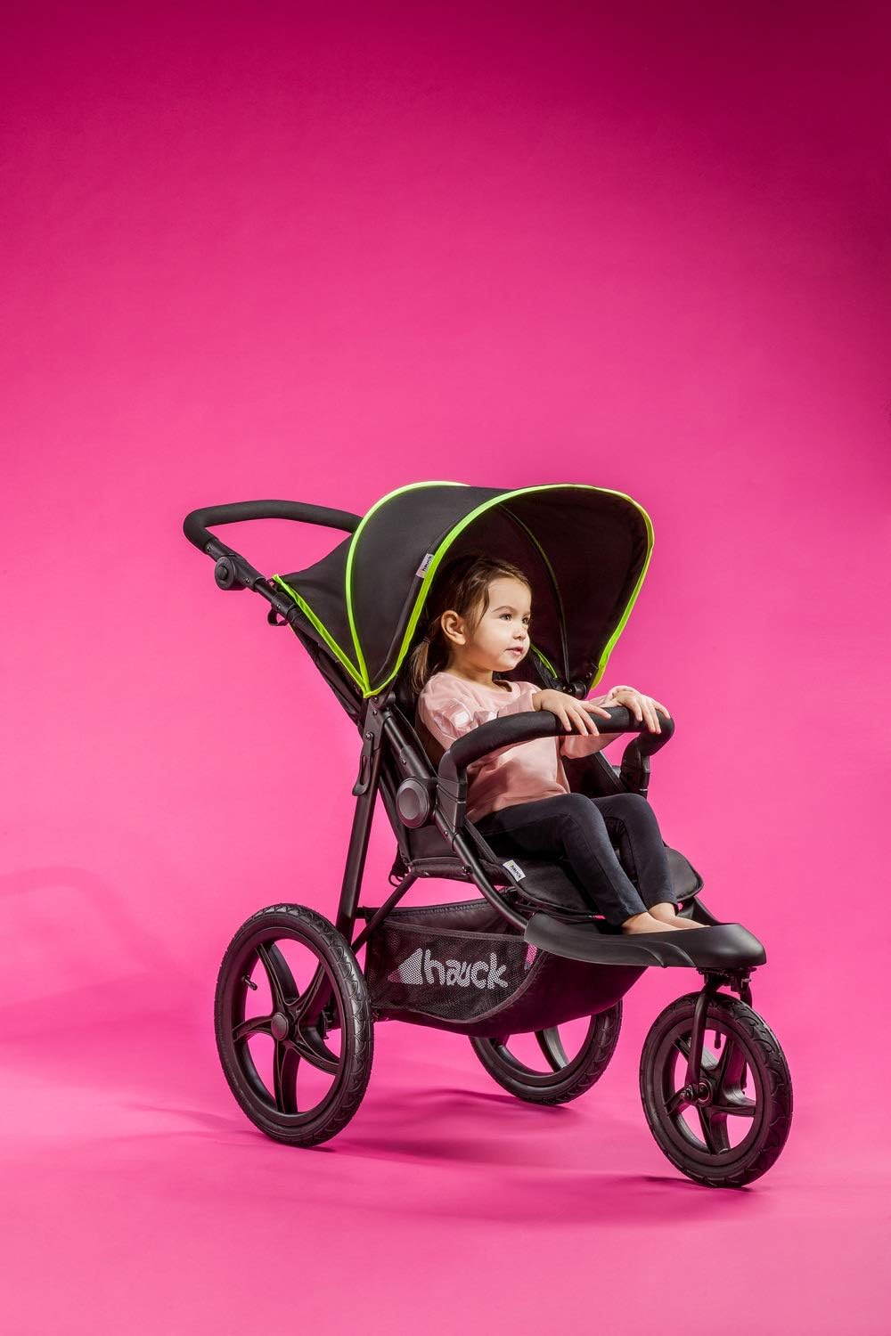 Hauck Runner, Silla de Paseo con 3 Ruedas Neumaticas, desde el Nacimiento hasta 25kg, Compacto, Carrito Plegable Bebe, Ruedas Giratorias XL con Camara de Aire, Capota UV 50+, Negro/Amarillo Neón