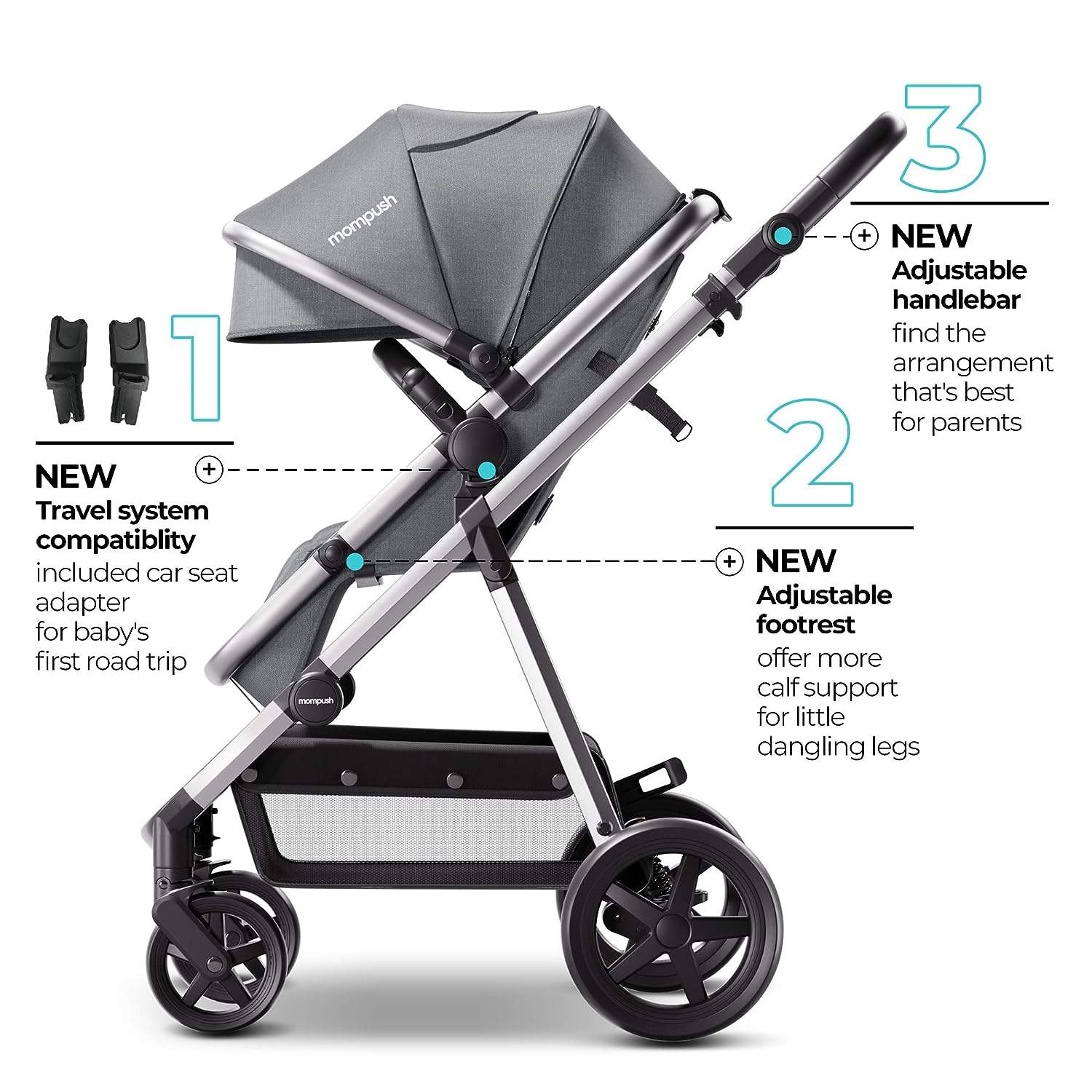 Mompush Meteor 2 Baby Stroller 2-in-1 with Bassinet Mode, Compatible with Major Infant Car Seat, Adapter Included - Stable Bassinet Stroller Combo, Full-Size Baby Strollers for Family Outings