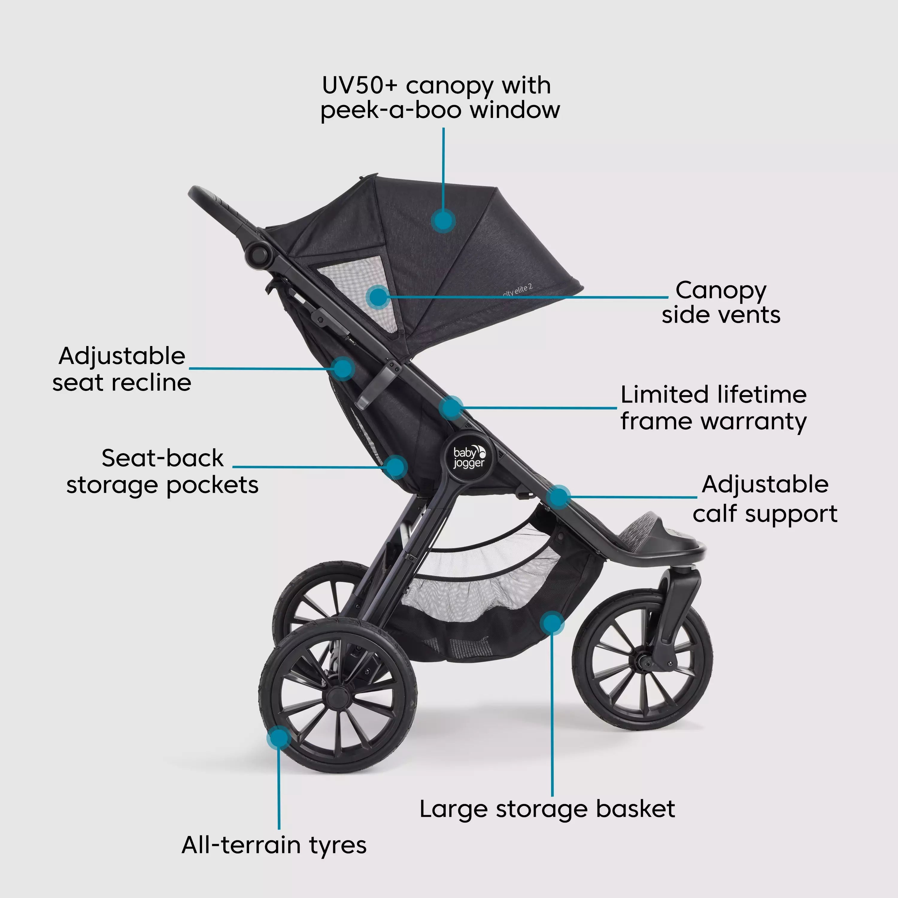 Bugaboo Dragonfly City Stroller, Lightweight Compact Baby Stroller with One Hand Easy Fold in Any Position, Full Suspension, XL Underseat Basket, Black Chassis and Midnight Black Sun Canopy