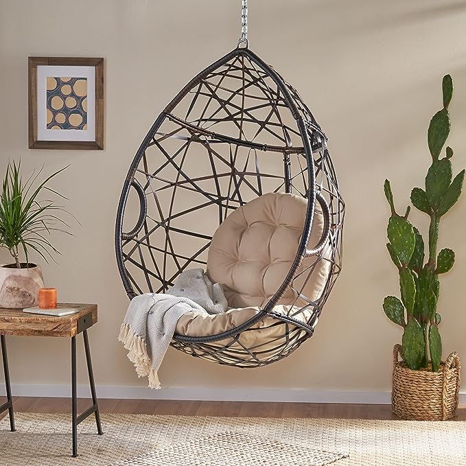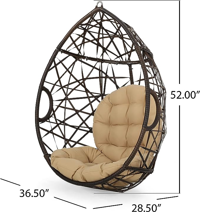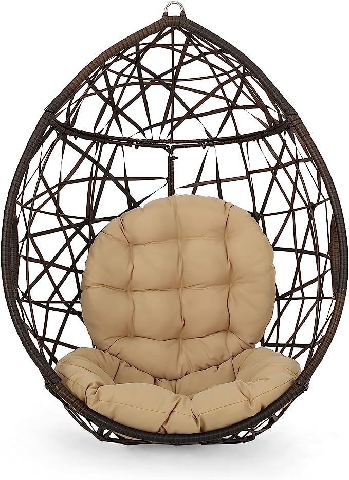 Christopher Knight Home Isaiah Indoor/Outdoor Wicker Tear Drop Hanging Chair (Stand Not Included), Multi-Brown and Tan