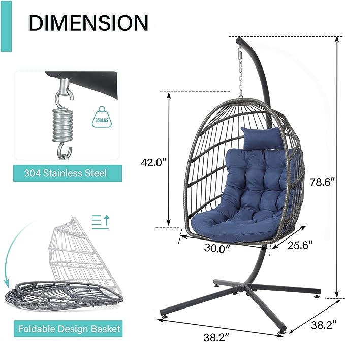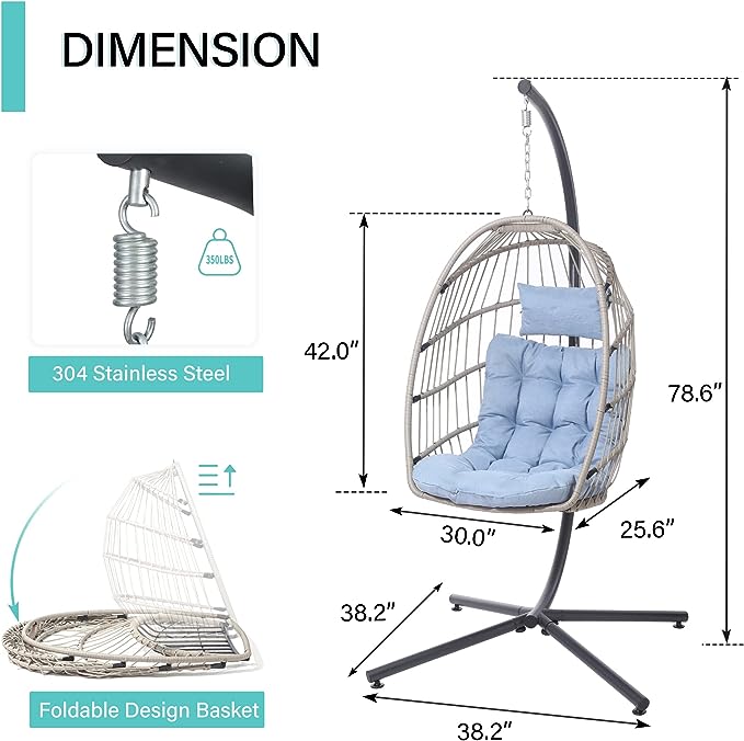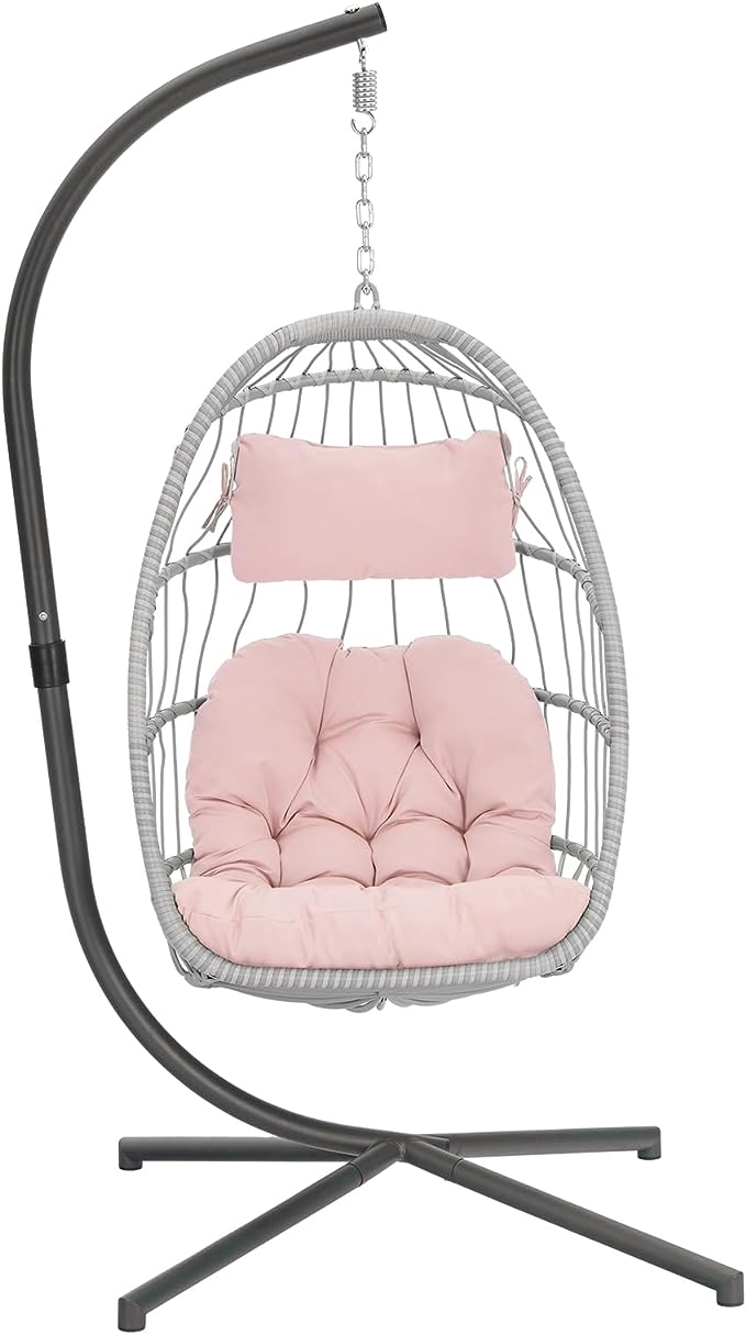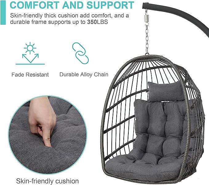 SWITTE Hanging Egg Chair with Stand, Egg Swing Hammock Chair with Stand, Indoor Outdoor Wicker Egg Chair with Cushion Headrest for Patio Bedroom Porch Garden, 350LBS Capacity