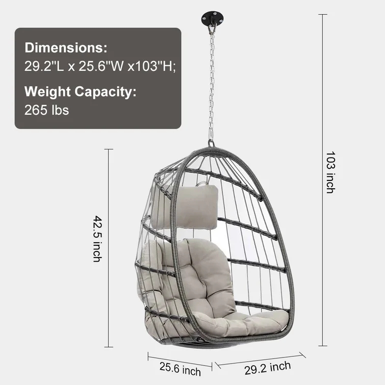 Luxury Extra Large Outdoor Hanging Pod Chairs Grey Rope Table