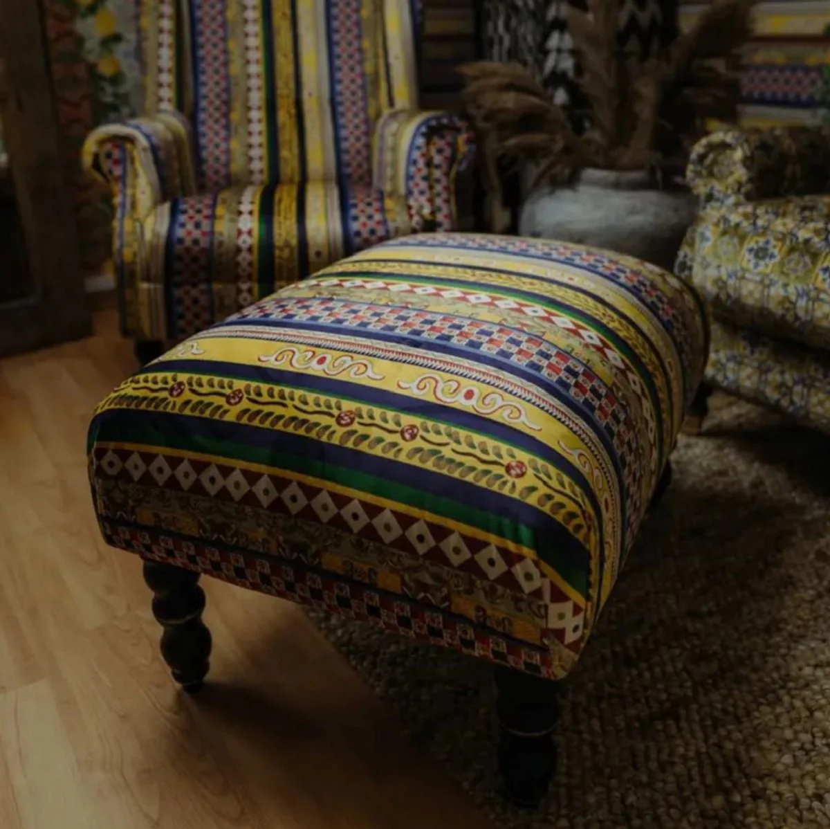 Casa Padrino Reposapi¨¦s de Lujo con Rayas Multicolor / Negro 77 x 55 x A. 45 cm - Taburete Rectangular de Terciopelo - Muebles de Sal¨®n - Muebles de Hotel - Muebles de Lujo - Int¨¦rieur de Lujo
