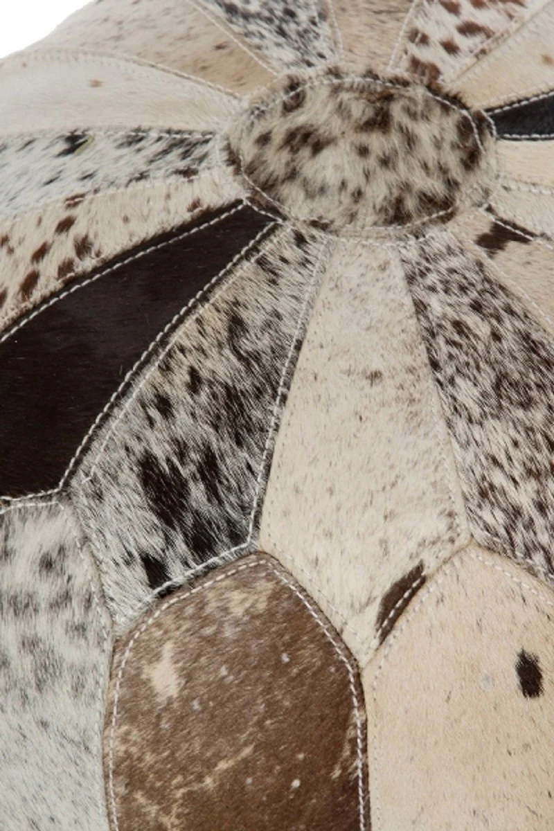 Casa Padrino taburete de piel de estilo campestre marrón / blanco / natural 30 x 30 x H. 45 cm - Taburete Sentado con Patas de Madera Maciza