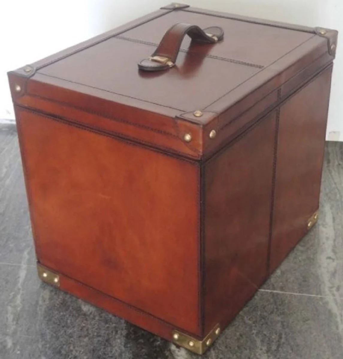 Casa Padrino mini bar / barra de la maleta de cuero genuino de lujo con accesorios co?ac marr¨®n 41 x 32,5 x H. 37 cm - Calidad de Lujo