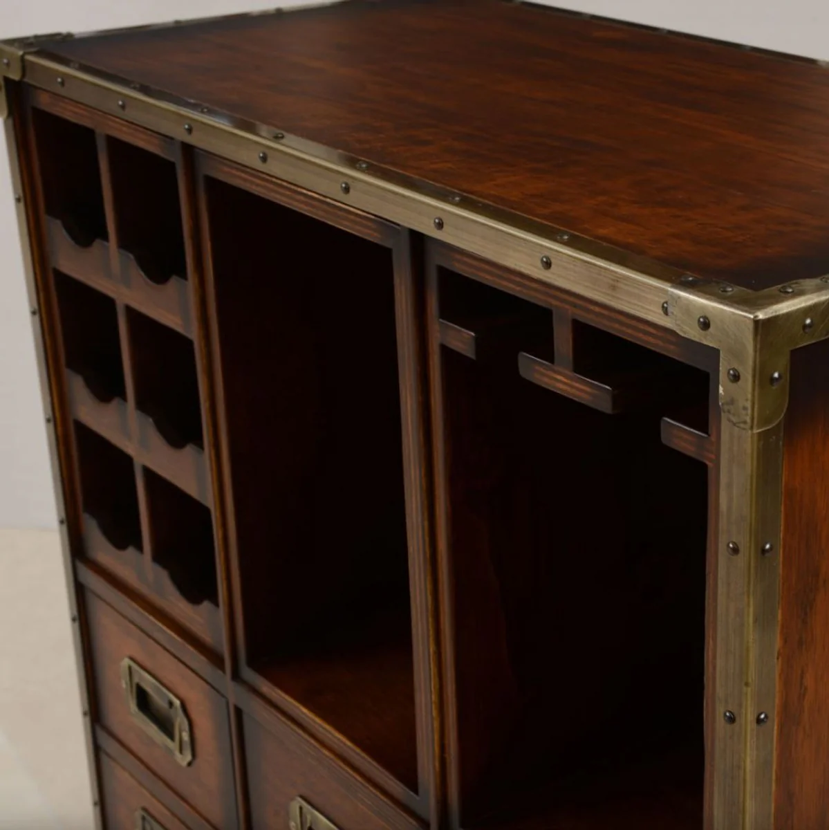Casa Padrino armario bar estilo vintage de lujo con ruedas marr¨®n 74 x 37 x A. 123 cm - Armario del vino de madera maciza - Mueble bar de estilo vintage - Mueble bar de lujo de madera maciza
