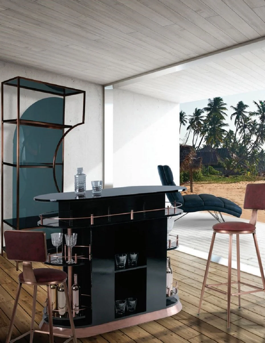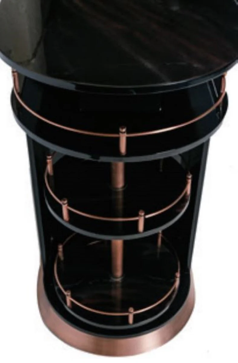Casa Padrino Barra de Bar de Lujo Negro Alto Brillo / Cobre 135 x 65 x A. 106 cm - Mesa de Barra de Madera Maciza Ovalada - Mueble Bar de Madera Maciza - Mueble Bar de Lujo - Muebles de Lujo