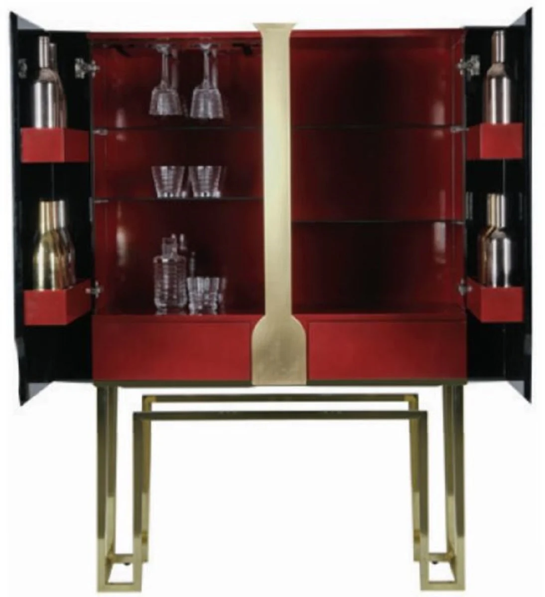 Casa Padrino armario bar de dise?o de lujo negro / oro rosa / rojo 170 x 44 x A. 98 cm - Armario del vino con 2 puertas - Armario de sal¨®n - Armario de bar - Muebles de Hotel - Colecci¨®n de Lujo
