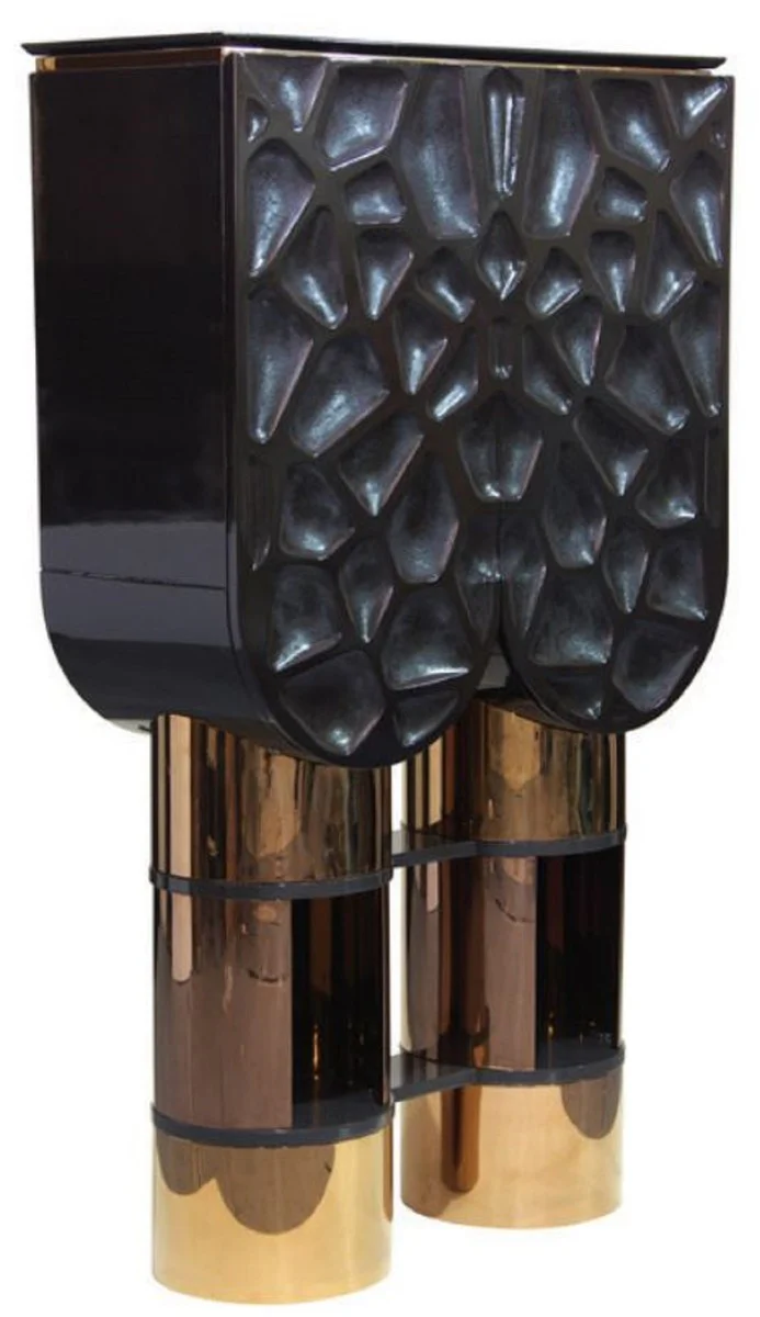 Casa Padrino armario bar de lujo marr¨®n oscuro alto brillo / oro mate 82 x 52 x A. 162 cm - Armario del vino con 2 puertas - Armario de sal¨®n - Armario de bar - Muebles de Hotel