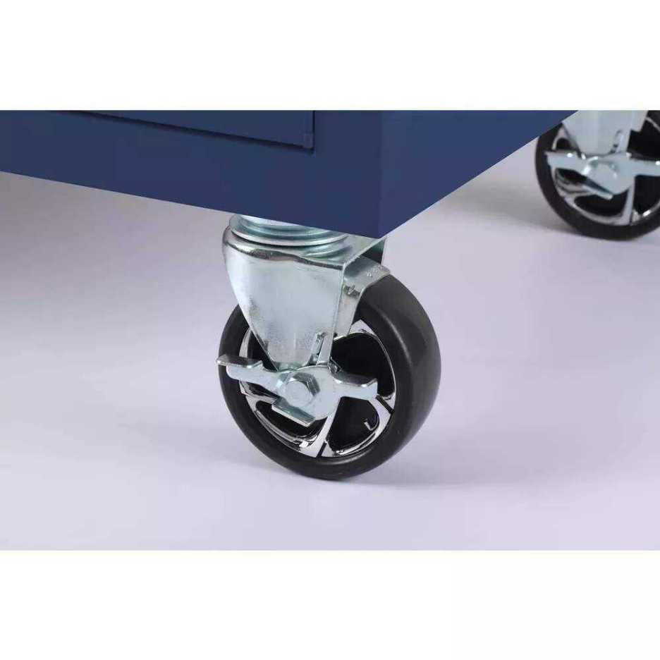 56 IN. W 5-DRAWER 1-DOOR, DEEP TOOL CHEST MOBILE WORKBENCH IN GLOSS BLUE WITH HARDWOOD TOP