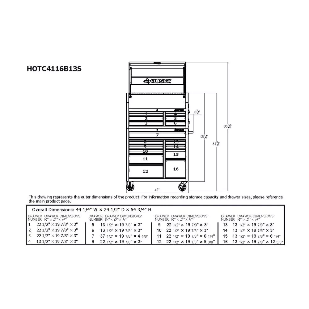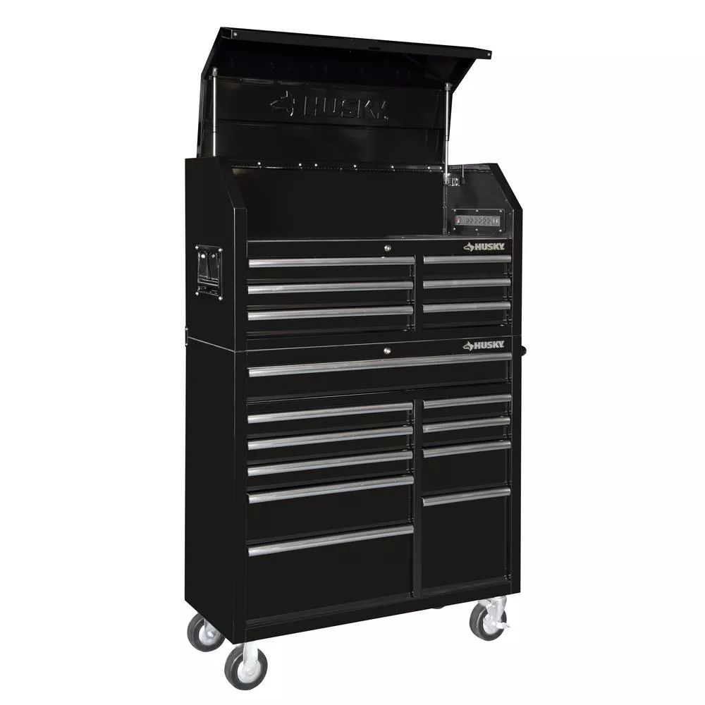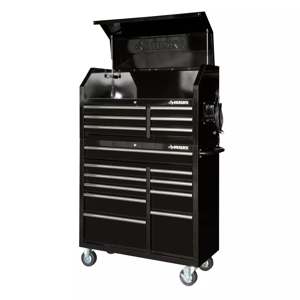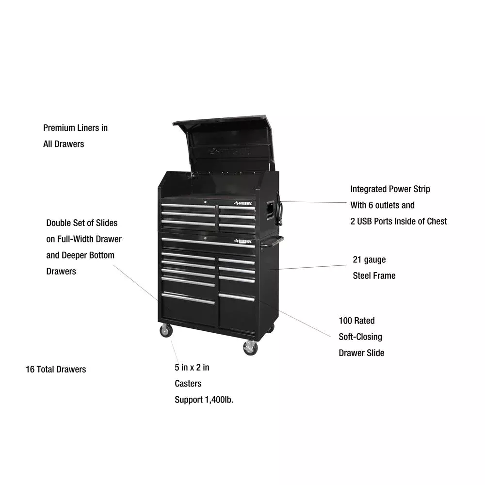 41 IN. X 24.5 IN D 16-DRAWER GLOSS BLACK TOOL CHEST AND CABINET COMBO