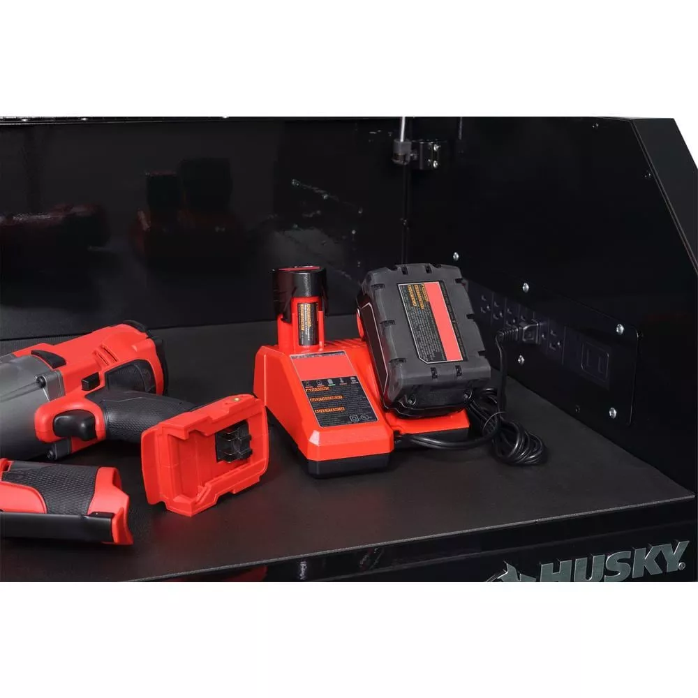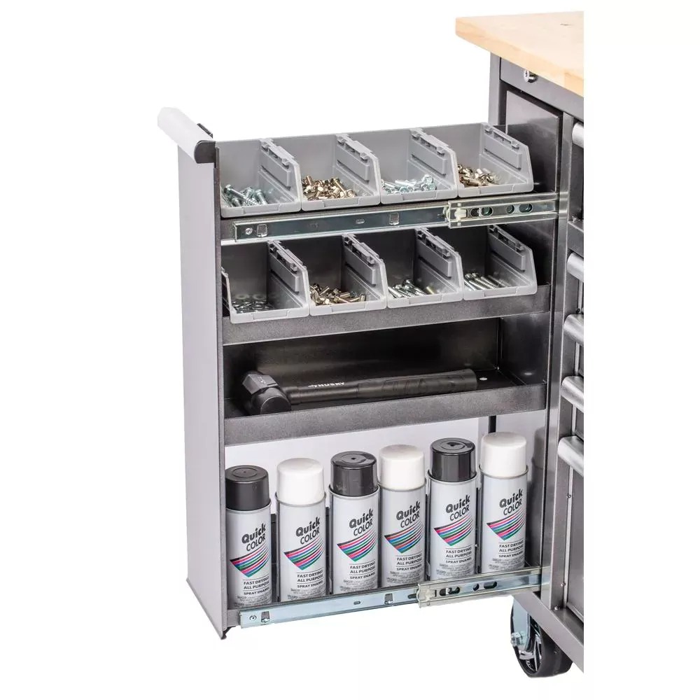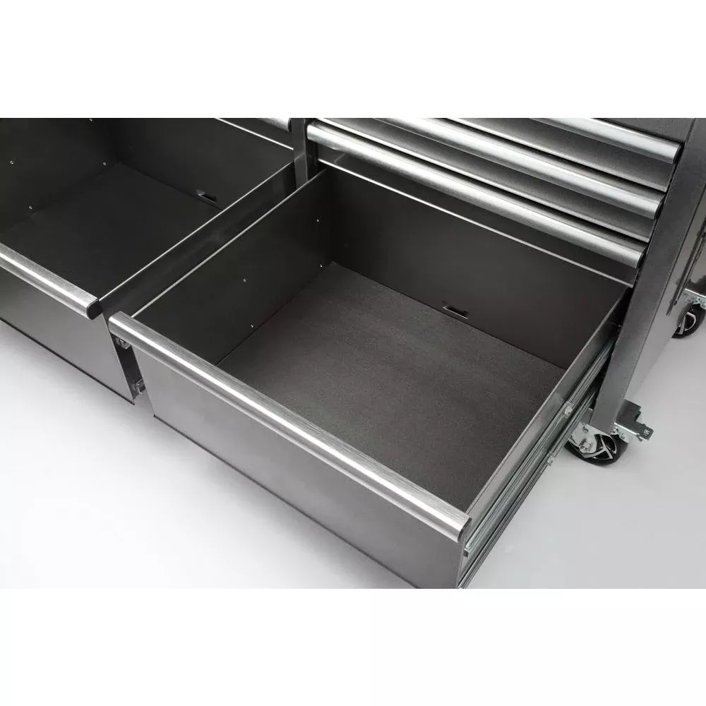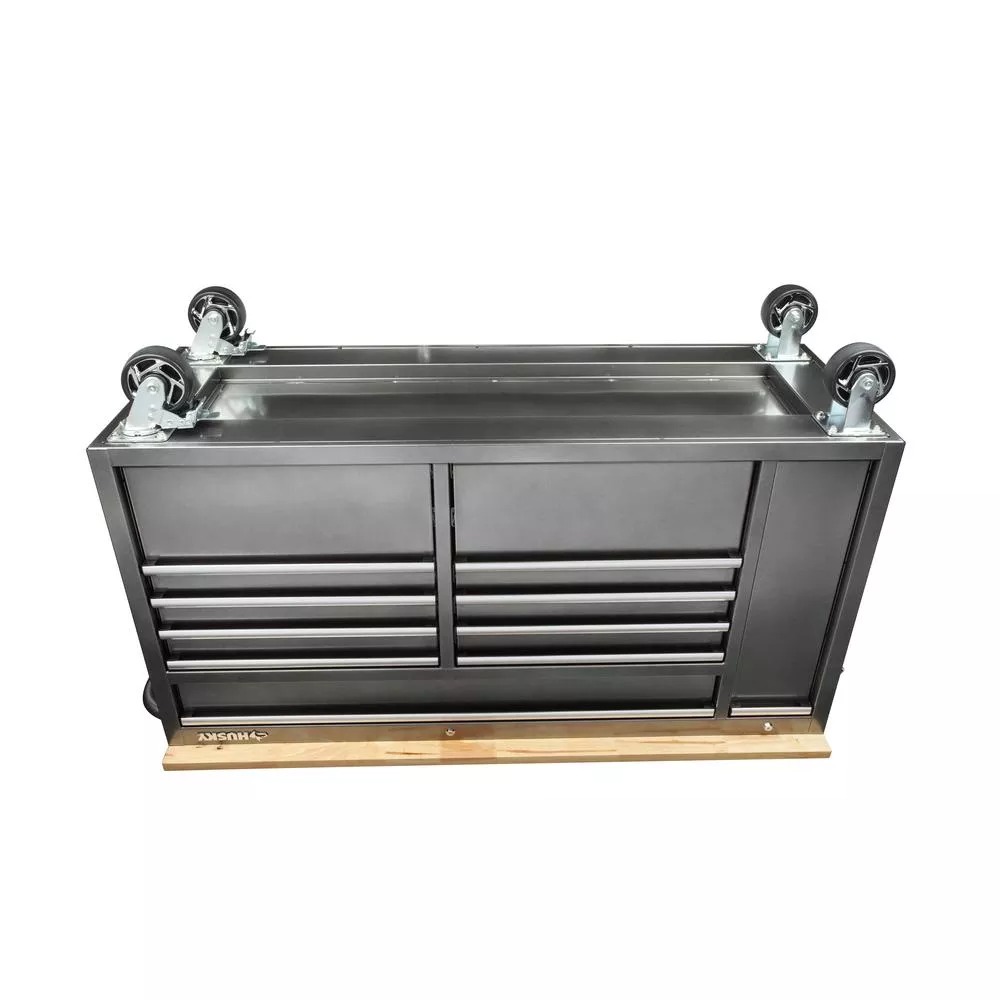 61 IN. W 10-DRAWER, DEEP TOOL CHEST MOBILE WORKBENCH IN METALLIC SILVER WITH SLIDING VERTICAL BIN STORAGE DRAWER