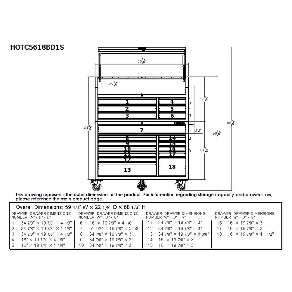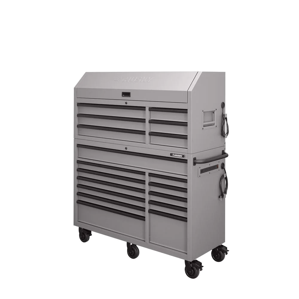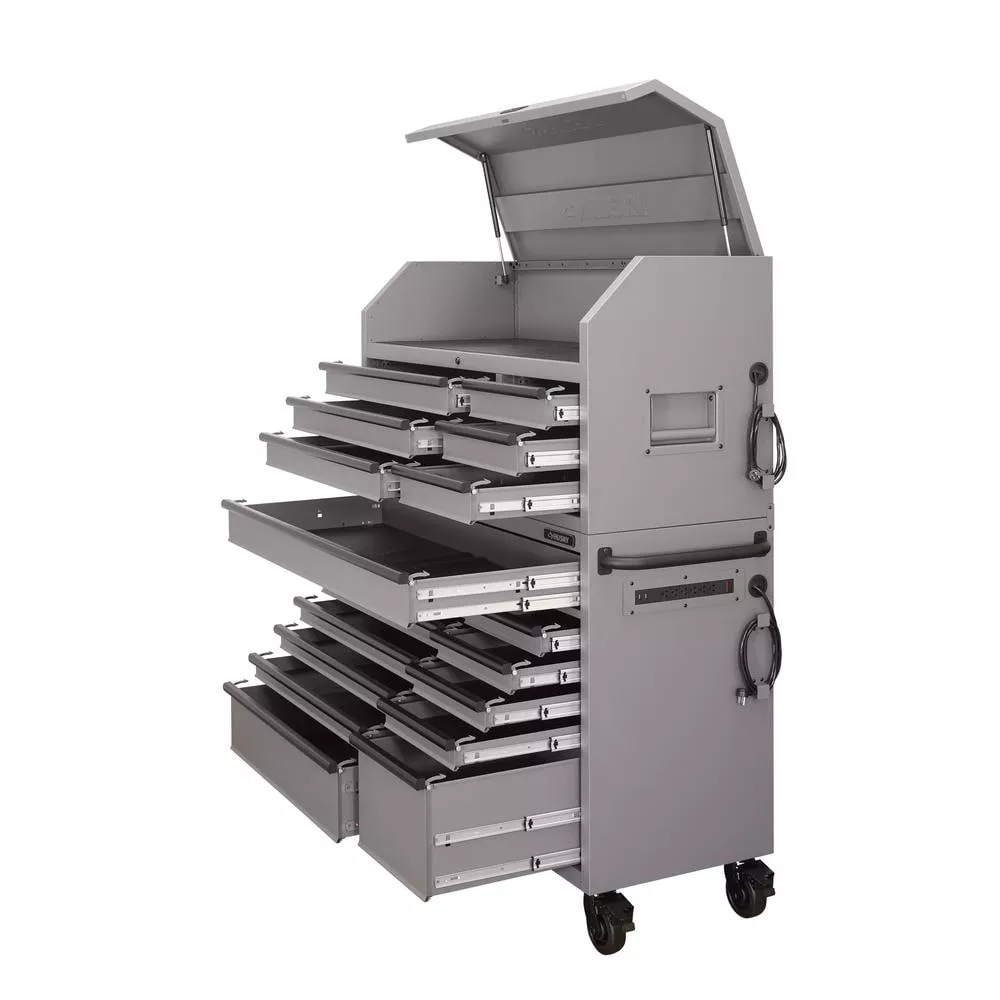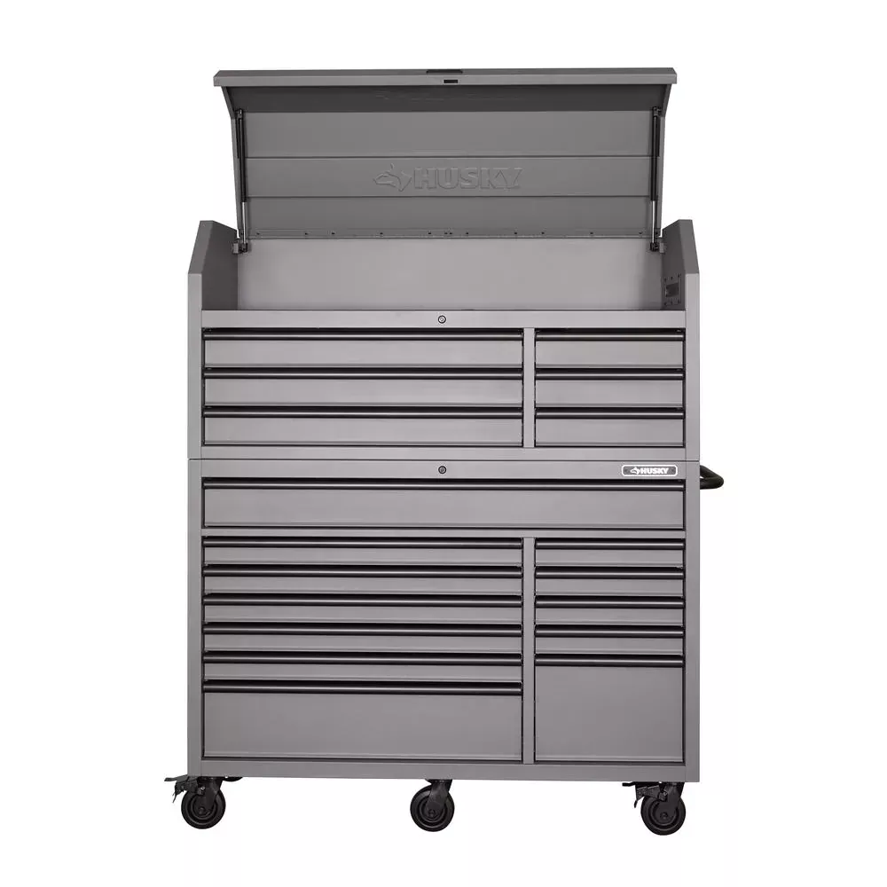 HEAVY-DUTY 56 IN. W 18-DRAWER COMBINATION TOOL CHEST AND CABINET SET, MATTE GRAY