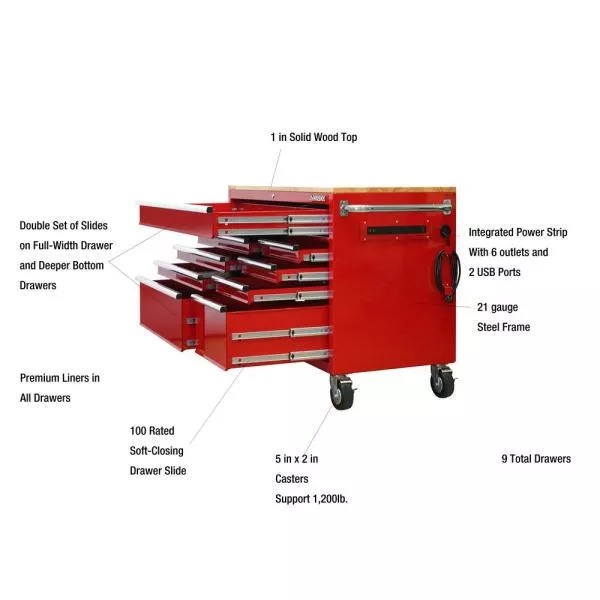 52 IN. W 9-DRAWER DEEP TOOL CHEST MOBILE WORKBENCH IN GLOSS RED