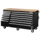 62 IN. W 14-DRAWER, DEEP TOOL CHEST MOBILE WORKBENCH IN GLOSS BLACK WITH SOLID WOOD TOP