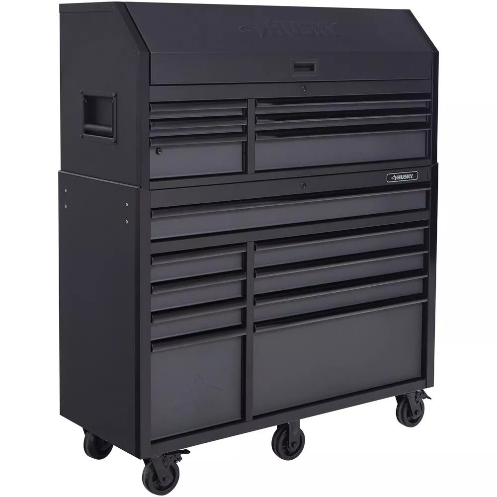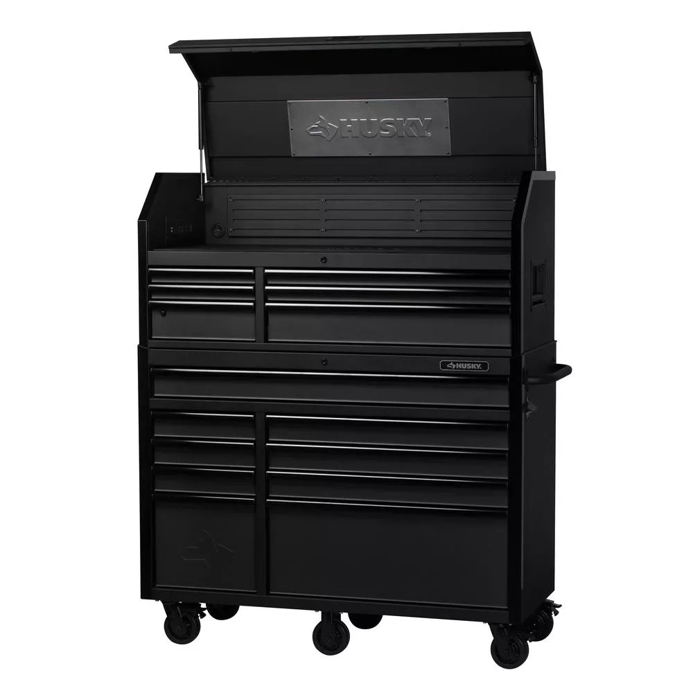 HEAVY-DUTY 52 IN. W 15-DRAWER, DEEP COMBINATION TOOL CHEST AND ROLLING CABINET SET IN MATTE BLACK