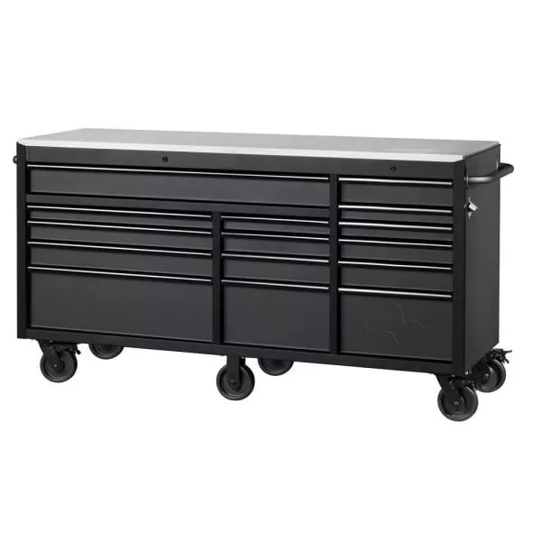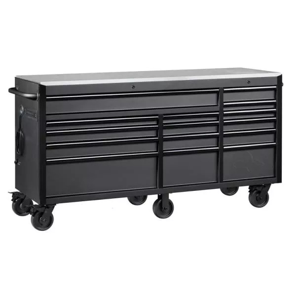 HEAVY-DUTY 72 IN. W 15-DRAWER, DEEP TOOL CHEST MOBILE WORKBENCH IN MATTE BLACK WITH STAINLESS STEEL TOP AND DUAL LOCKS