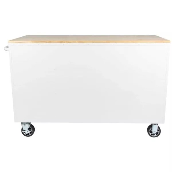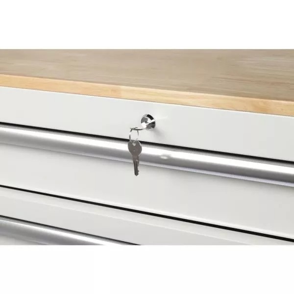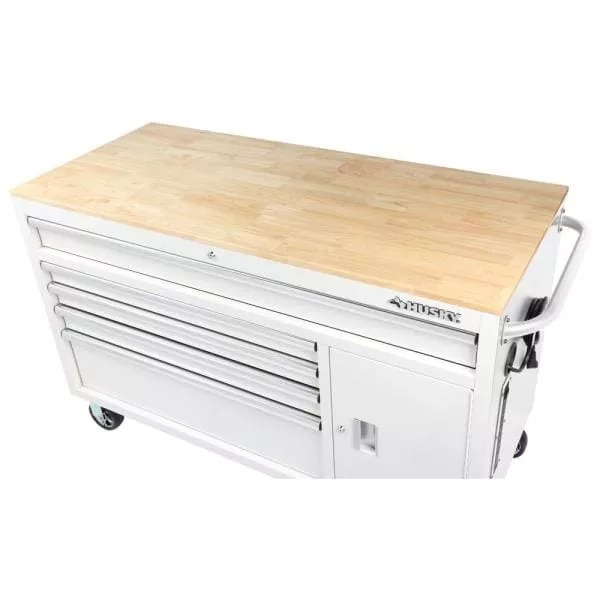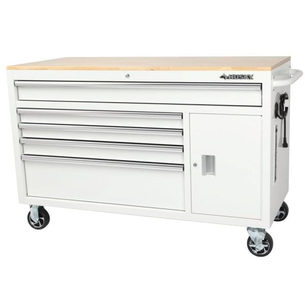 56 IN. W 5-DRAWER 1-DOOR, DEEP TOOL CHEST MOBILE WORKBENCH IN GLOSS WHITE WITH HARDWOOD TOP