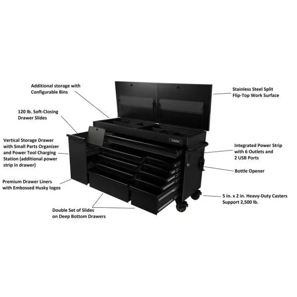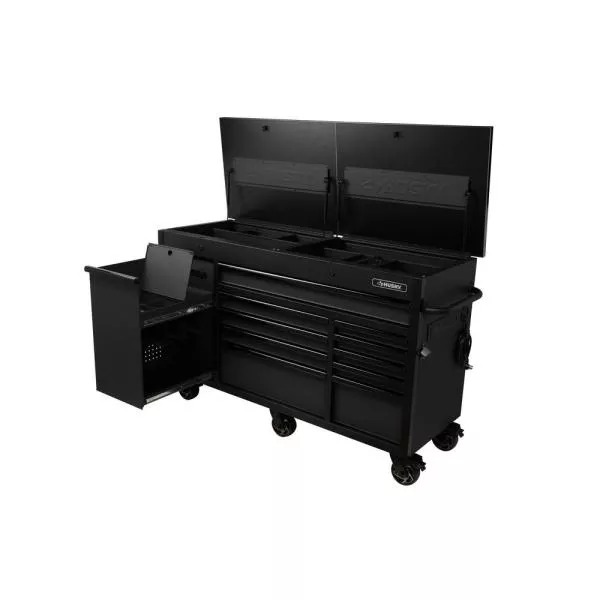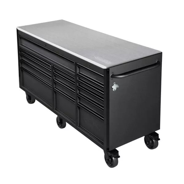 HEAVY-DUTY 63 IN. W 11-DRAWER, DEEP TOOL CHEST MOBILE WORKBENCH IN MATTE BLACK WITH FLIP-TOP STAINLESS STEEL TOP