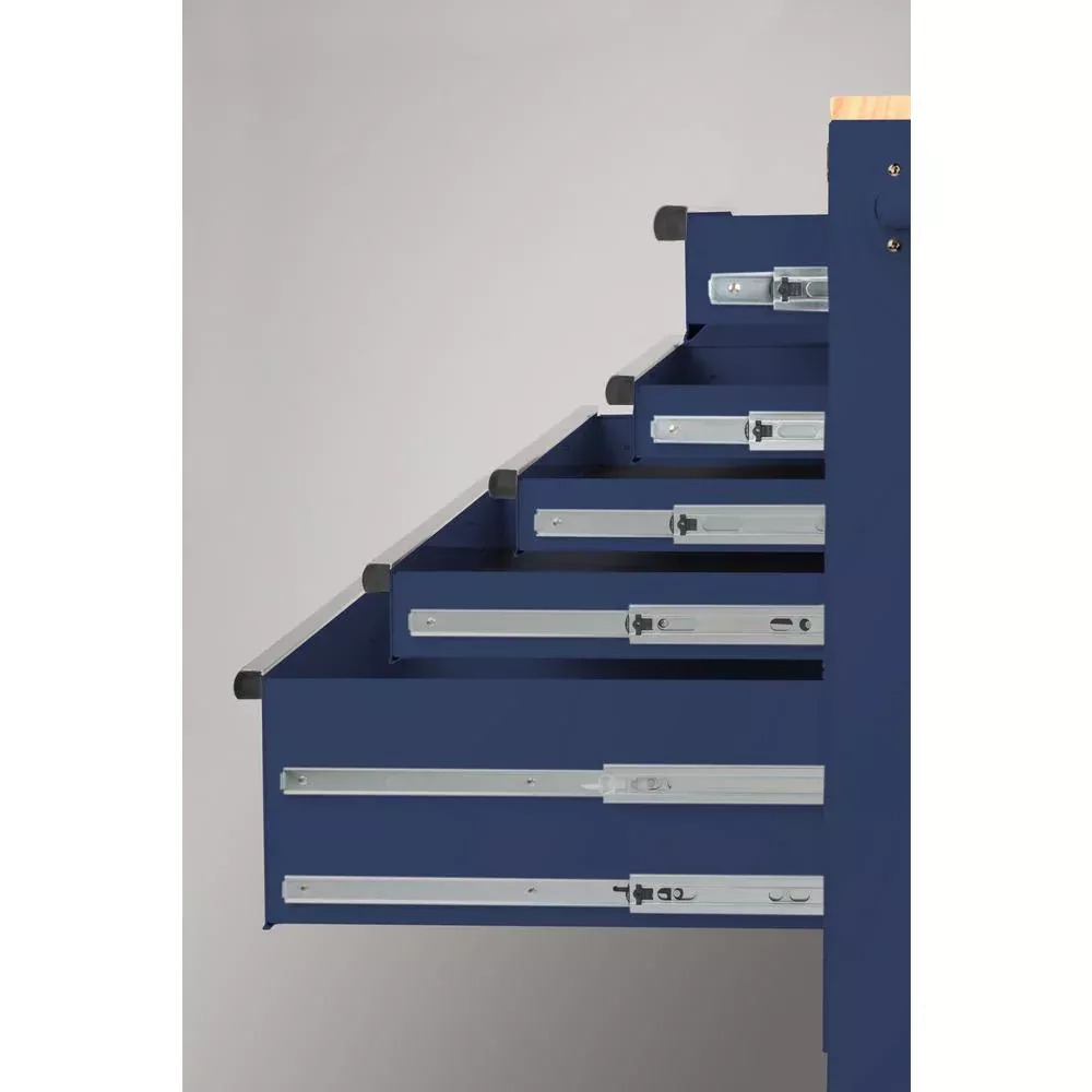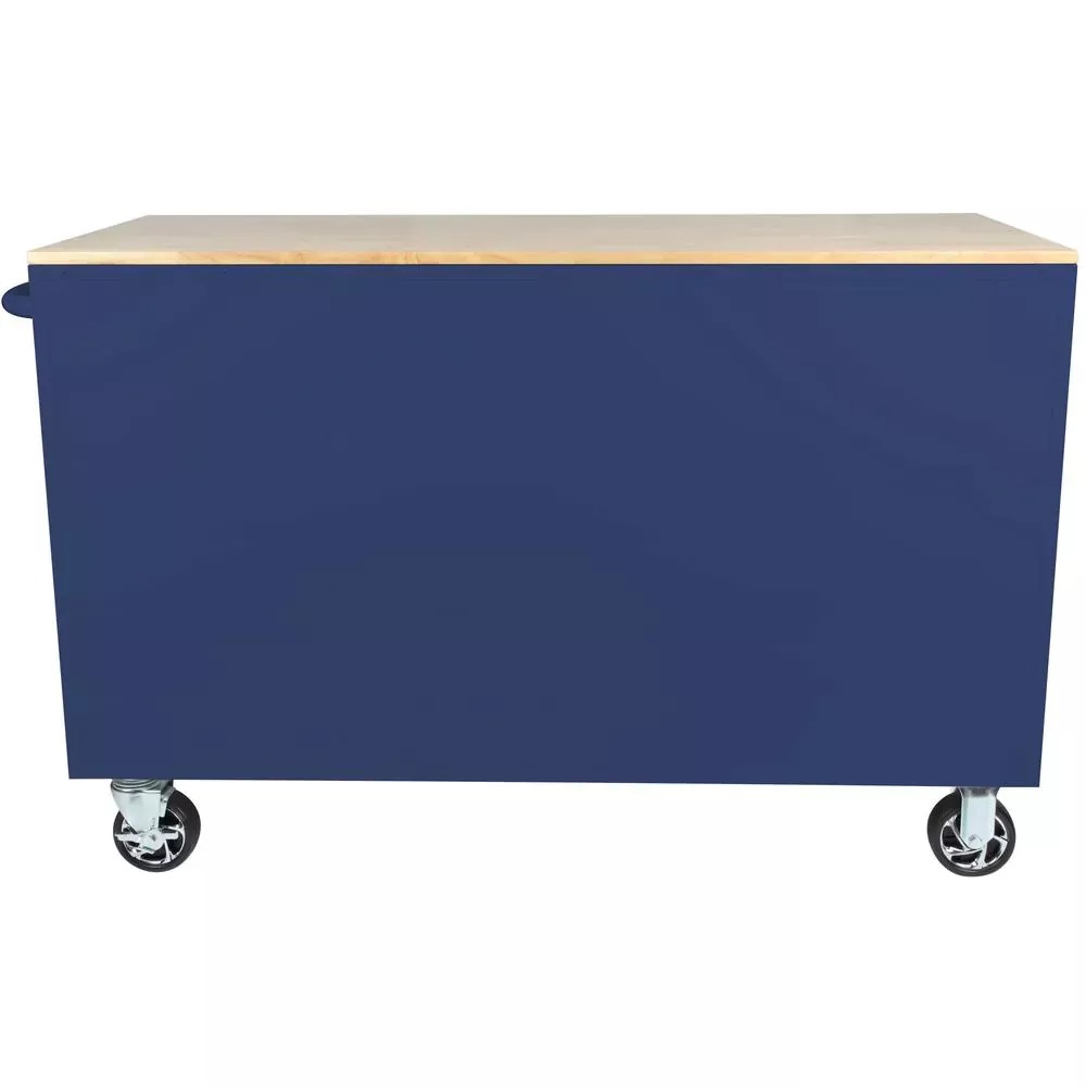 56 IN. W 5-DRAWER 1-DOOR, DEEP TOOL CHEST MOBILE WORKBENCH IN GLOSS BLUE WITH HARDWOOD TOP