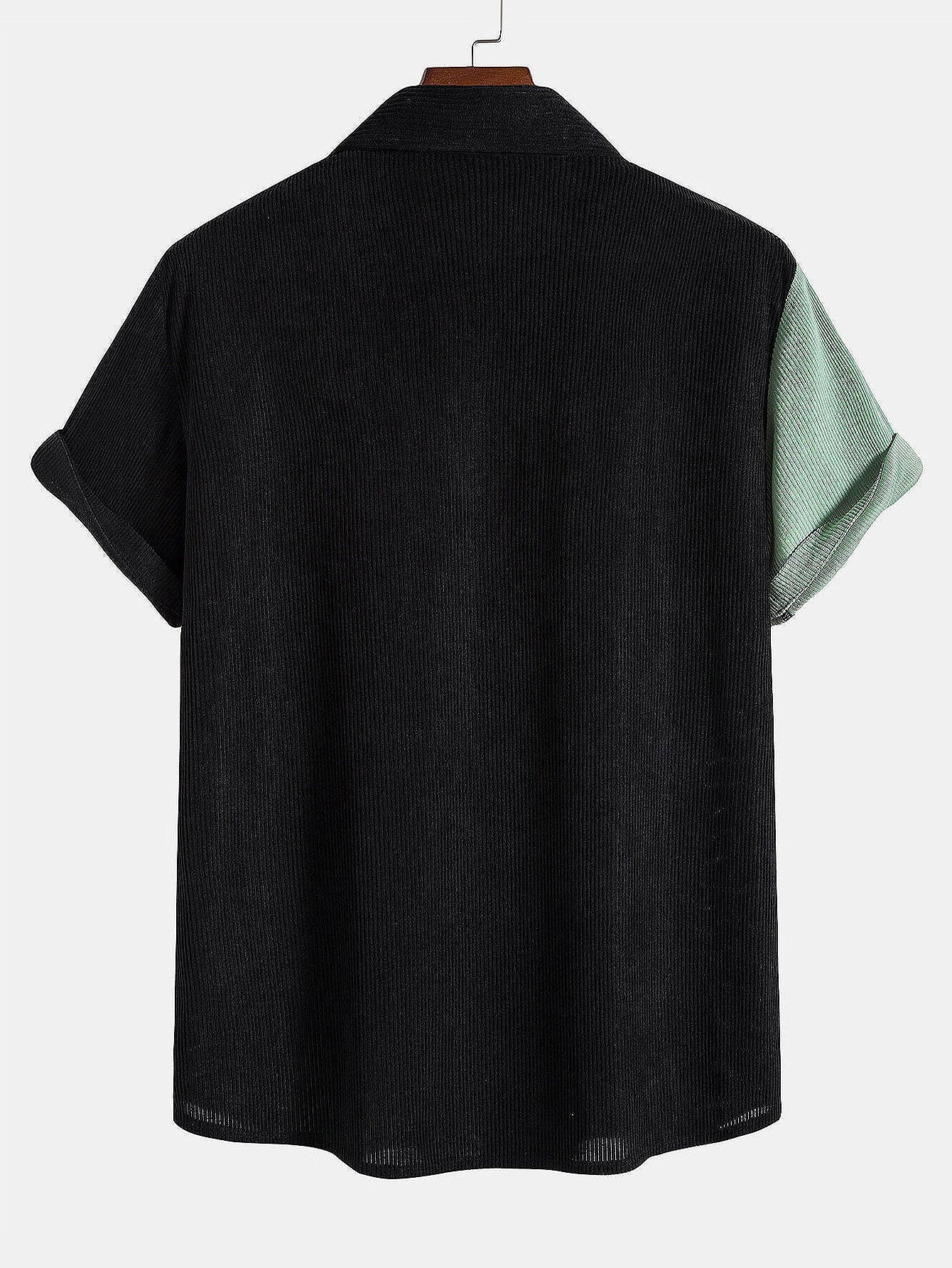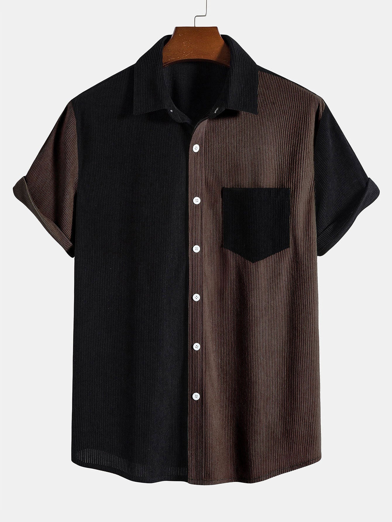 Short Sleeve Two-Tone Corduroy Shirt & Corduroy Shorts