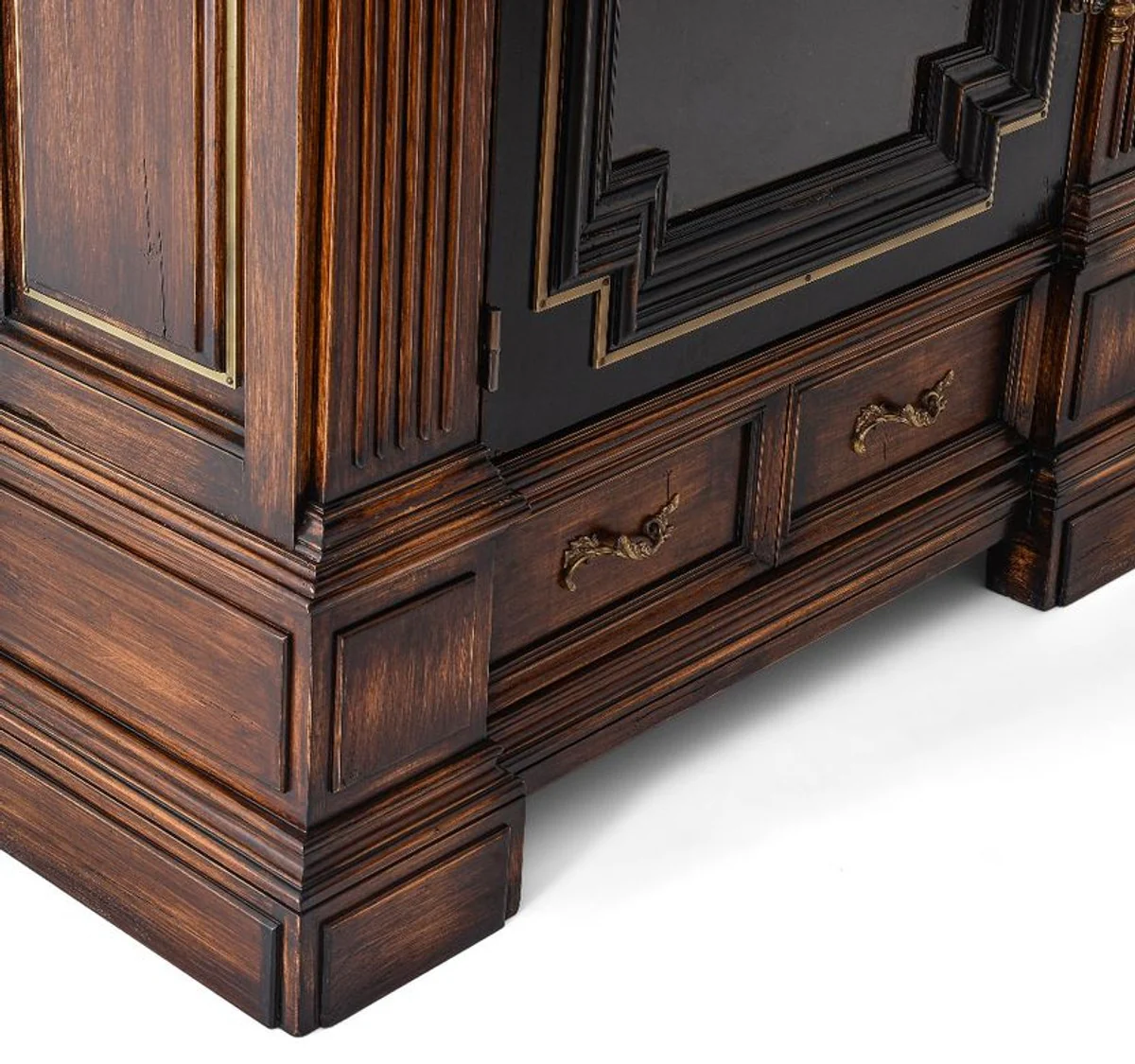 Casa Padrino Vitrina de Estilo Vintage de Lujo Marrón / Natural / Negro 226 x 56,5 x A. 216 cm - Vitrina de Madera Maciza con 2 Puertas y 4 Cajones - Muebles de Estilo Vintage - Muebles de Lujo