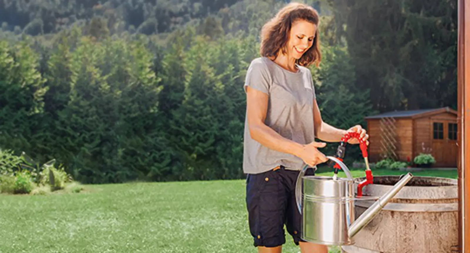 What is a rainwater barrel pump suitable for?For convenient water extraction using a hose or watering can from a container or cistern.